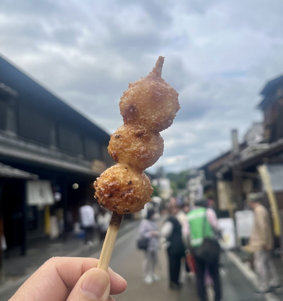 食事を終えて通りに戻ると、しょうゆの焦げる香りが風に乗って流れてきた。