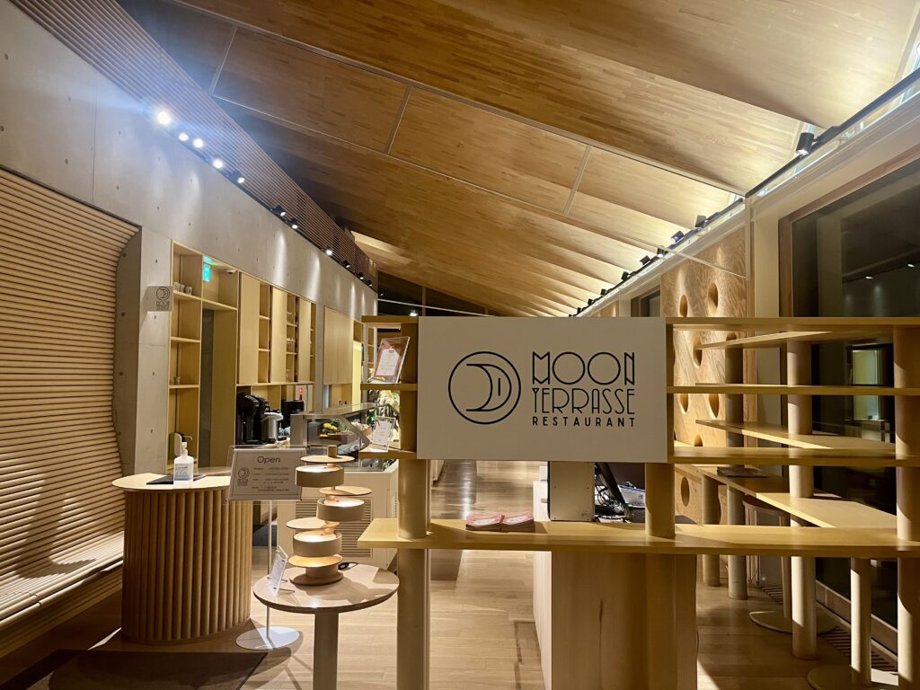レストラン〈Moon Terrasse〉の扉を開けると、木の香りとあたたかな照明が迎えてくれた。