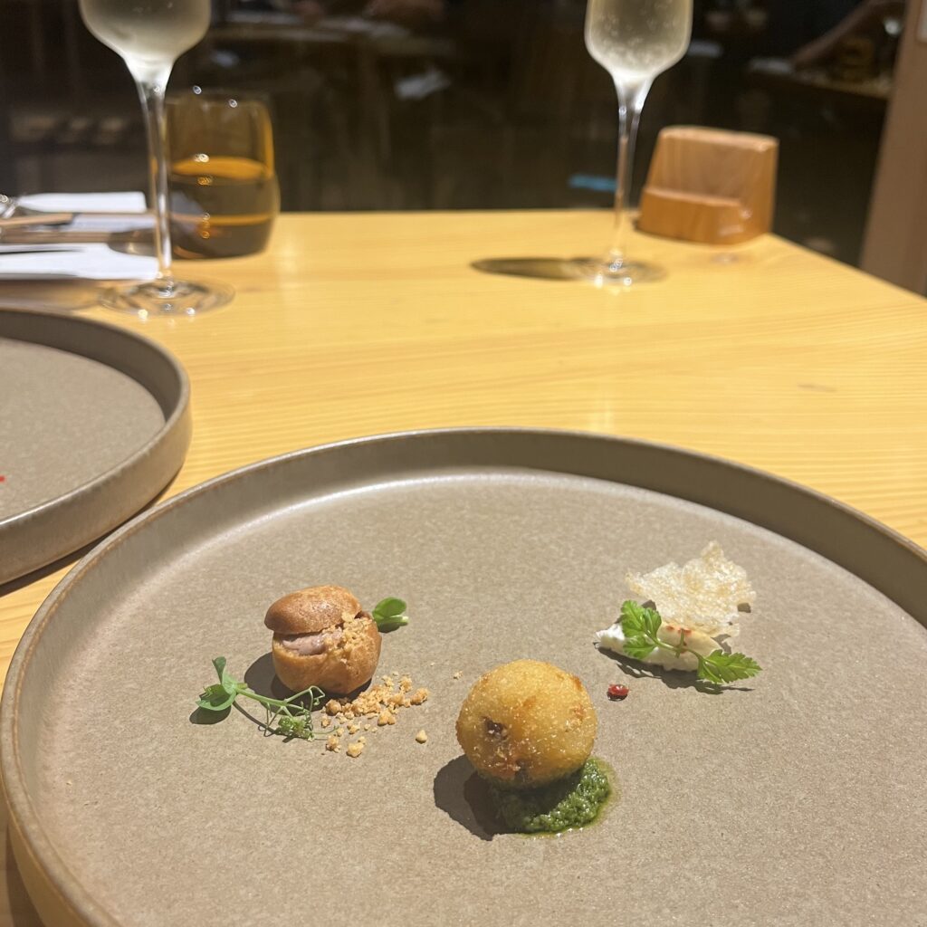 最初の一皿は、お米を使ったアミューズ。