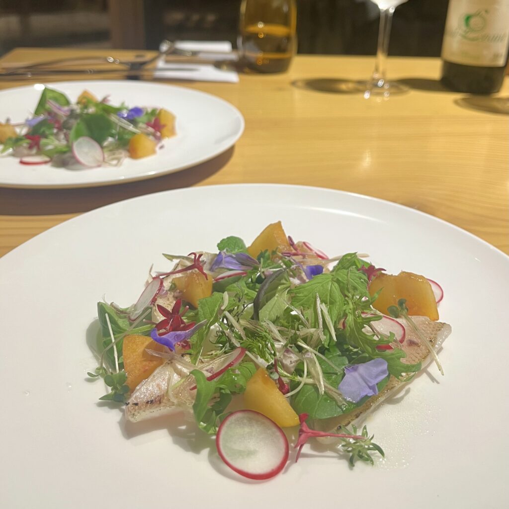 続く季節の鮮魚のマリネは、やわらかな酸味のドレッシングとともに。